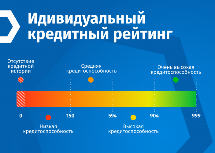 Для вычисления скорингового балла банки и иные финансовые организации используют не только данные кредитной истории, но и дополнительную информацию о заемщике. Дополнительные сведения такие организации могут получить в Федеральной налоговой службе, Социальном фонде Российской Федерации, Федеральной службе судебных приставов, иных органах государственной власти и других учреждениях. Каждая характеристика заемщика в скоринговых моделях оценивается в баллах и имеет определенный вес. Если гражданин ни разу не пользовался заемными средствами, то модель строится только на анкетных и дополнительных данных. Значение скорингового балла выражается в виде показателя от 1 до 999 на цветовой шкале и означает следующие категории кредитоспособности: низкую (1-149 баллов), среднюю (150-593), высокую (594-903) и очень высокую кредитоспособность (904-999).