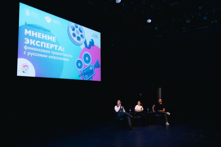 Комики Митя Пушкин и Надежда Бобрышева выступили на финансовом стендапе и рассказали о своем театральном и музейном опыте, путешествиях, финансовых привычках и нерациональных тратах. А зрители кинолектория посмотрели фрагменты известных фильмов, обсудили финансовое поведение киногероев и увидели мир денег глазами великого русского драматурга А.Н. Островского.