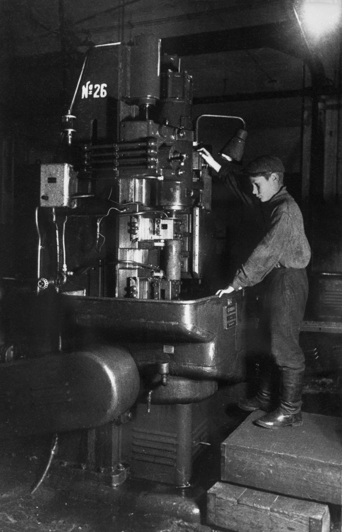 Во время трудовой вахты на военном Н-ском заводе; «дядя Саша» за работой.