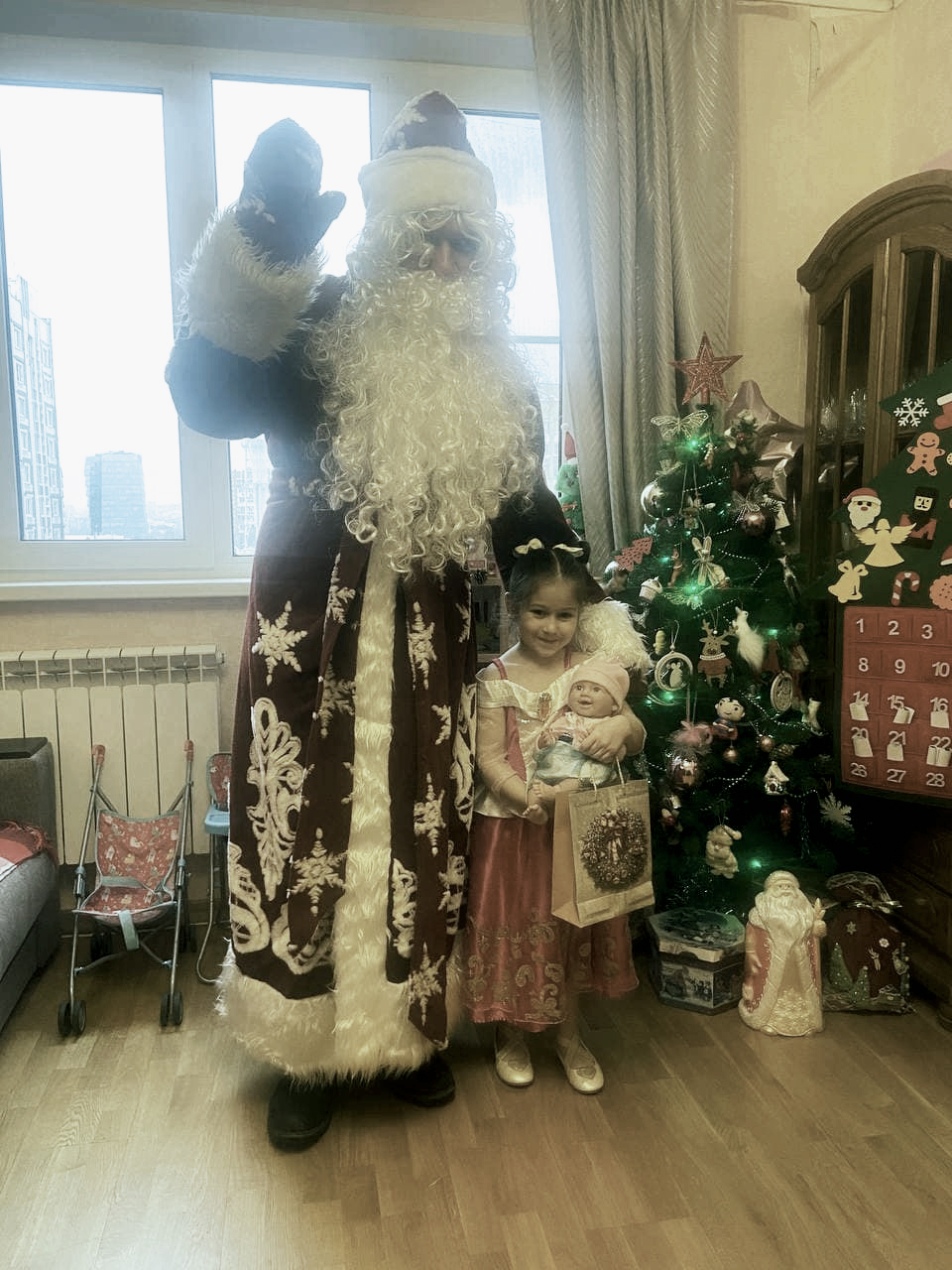 Министр Правительства Москвы, руководитель Департамента финансов города Елена Зяббарова сняла первой с елки несколько шаров. В канун Нового года подарки шестилетней Василиссе и пятилетней Марии доставил Дед Мороз – самый артистичный представитель Совета молодых специалистов столичного Департамента. «Здравствуйте, я к Василиссе. Ты ли писала письмо? Вот я и пришел с подарками», -вручая заветный самокат и сладости обратился Дед Мороз к юной принцессе. Маленькая Мария встречала гостя в пуантах и розовом бальном платье. Ее заветной мечтой было увидеть балет на сцене Большого театра. Полюбоваться виртуозной хореографией артистов балетного представления девочка отправилась вместе с мамой.