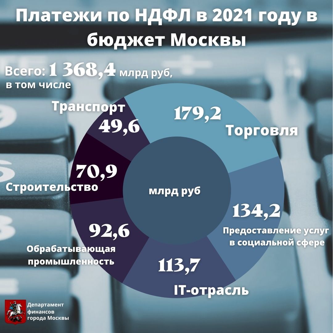 Одним из самых значимых доходных источников бюджета Москвы выступает налог на доходы физических лиц (НДФЛ). По итогам 2021 года доля НДФЛ в налоговых и неналоговых доходах бюджета достигла 42,8 процента.