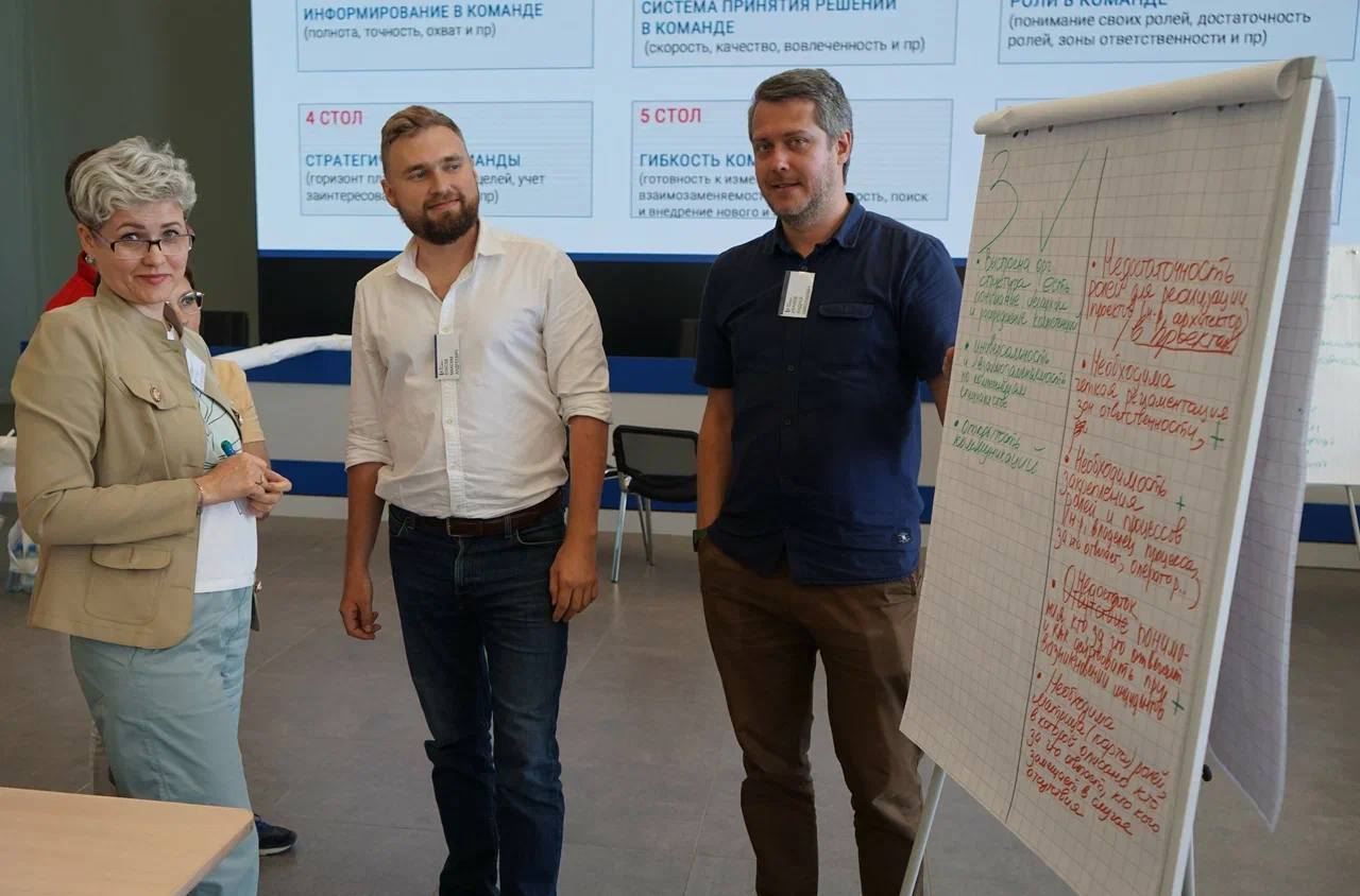 Выявить сильные и слабые стороны в работе IT-подразделений и отработать профессиональные коммуникации участники сессии смогли в рамках командного трека развития. Он помог им ответить на ключевые вопросы для командообразования: какова миссия команды, что каждый может привнести в развитие, что делает команду сильнее?