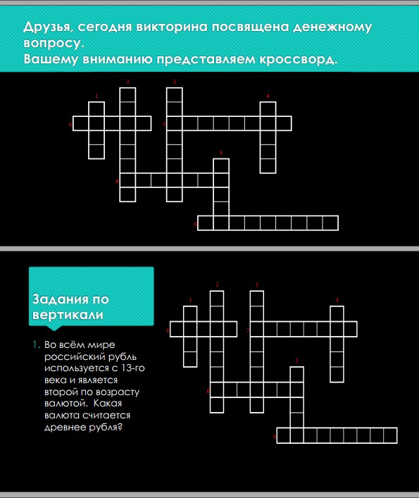 А что насчет изучения истории отечественной валюты – рубля – в игровой форме? Соответствующий кроссворд подготовил еще один ученик школы № 656, третьеклассник Захар Филиппов.