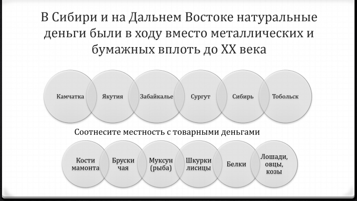 А викторина ученицы 9 класса школы № 1637 Анастасии Кирюшиной включает вопросы о становлении и развитии денежных систем на территории России. Любопытно, что натуральные деньги использовались в нашей стране вплоть до XX века. Так, на Камчатке можно было расплачиваться шкурами лисиц, а в Якутии – костями мамонта.