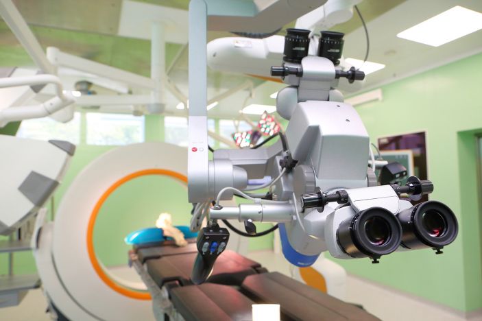 Операционная, микроскоп в Научно-исследовательском клиническом институте оториноларингологии имени Л.И. Свержевского