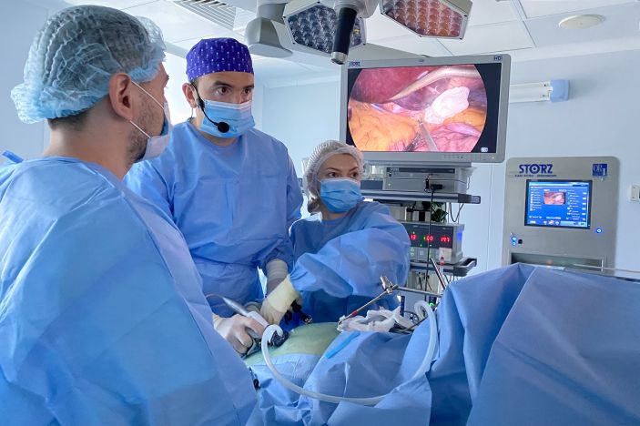 Лапароскопическая ассистированная правосторонняя гемиколэктомия с расширенной лимфаденэктомией — проведение хирургического вмешательства при локализованных опухолях толстой кишки с удалением регионарных лимфатических узлов. Метод позволяет провести хирургическое вмешательство с меньшей травматичностью, чем открытое хирургическое вмешательство, и резко снизить риски послеоперационных осложнений. В 2022 году выполнено около 100 таких операций.