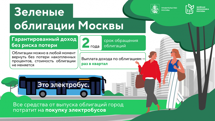 В 2021 году столица разместила выпуск биржевых зеленых облигаций на 70 миллиардов рублей, средства которого в полном объеме направили на приобретение электробусов и строительство Большой кольцевой линии метро. Облигации выпустили для покупки прежде всего финансовыми организациями, но интерес к ним проявили и физические лица. Исходя из этого, город принял решение о выпуске зеленых облигаций для населения.