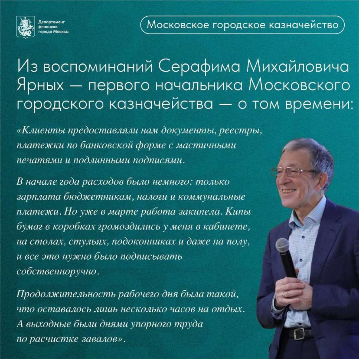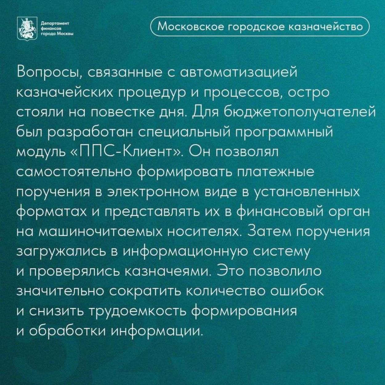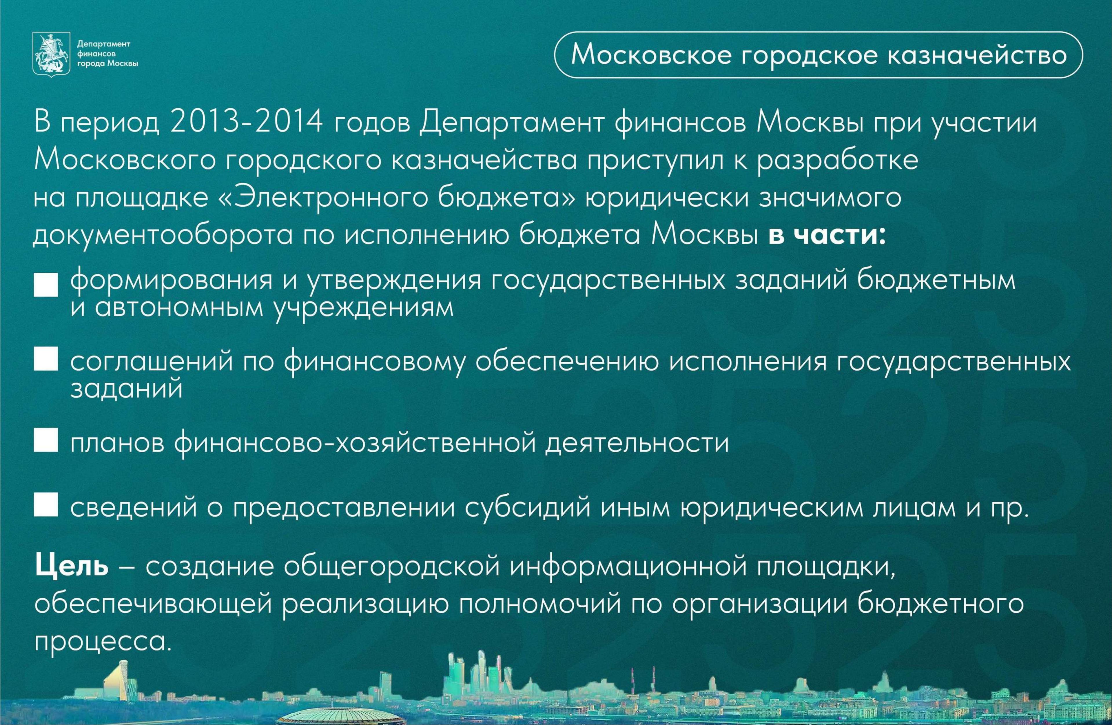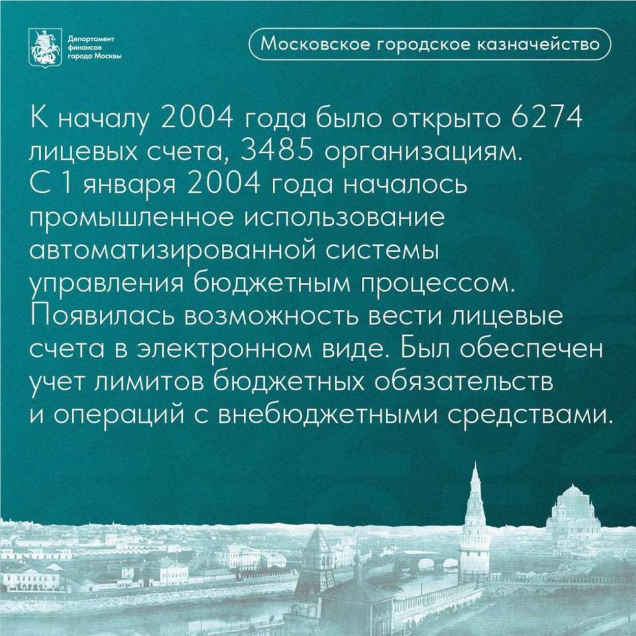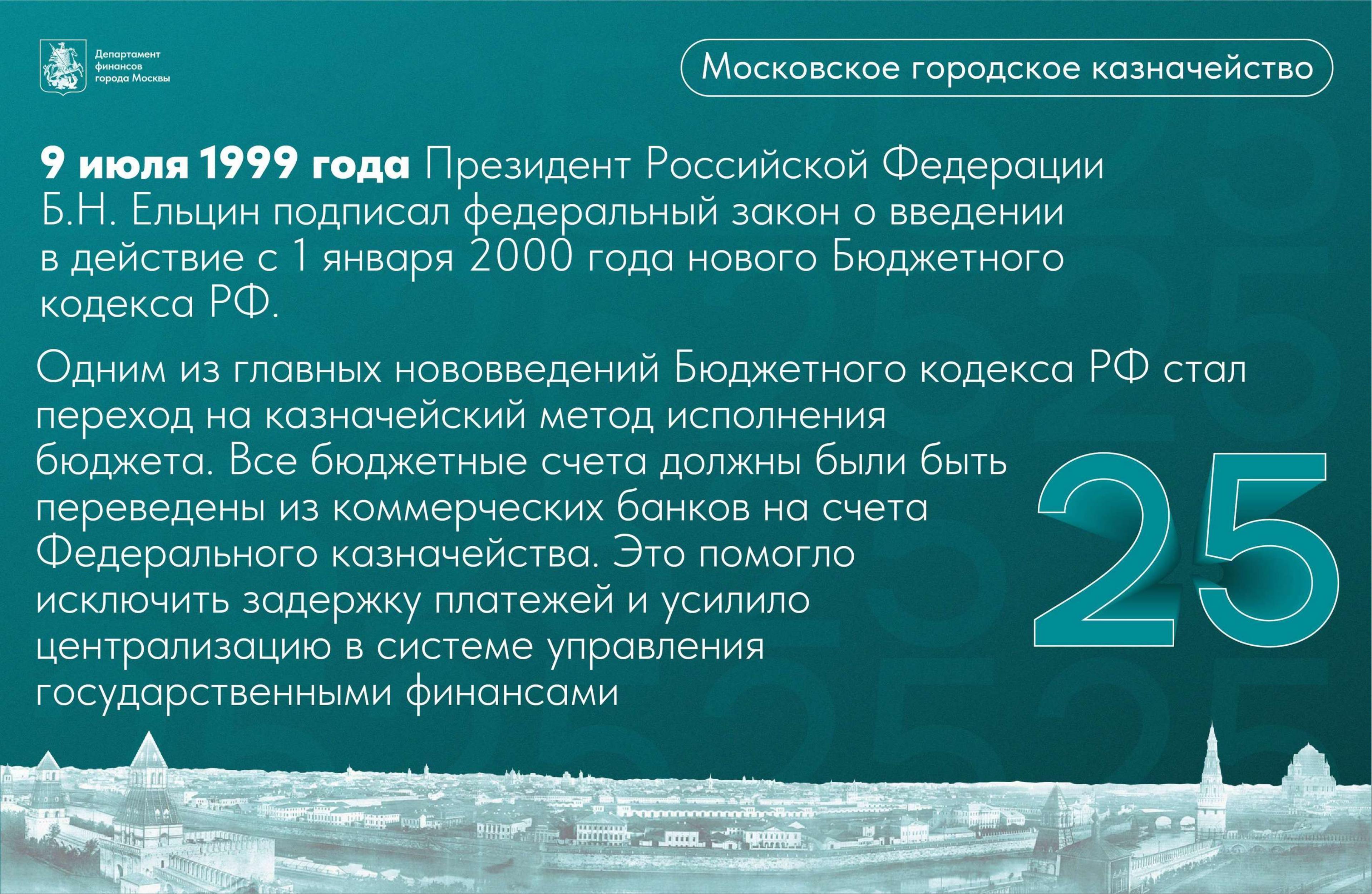 В прошлом году Московскому городскому казначейству исполнилось 25 лет. Мы решили вспомнить, с чего все начиналось и какие результаты за это время достигнуты. Благодаря нашим карточкам вы сможете окунуться в атмосферу начала XXI века и узнать интересные факты о развитии столичных финансов и казначейской системы.