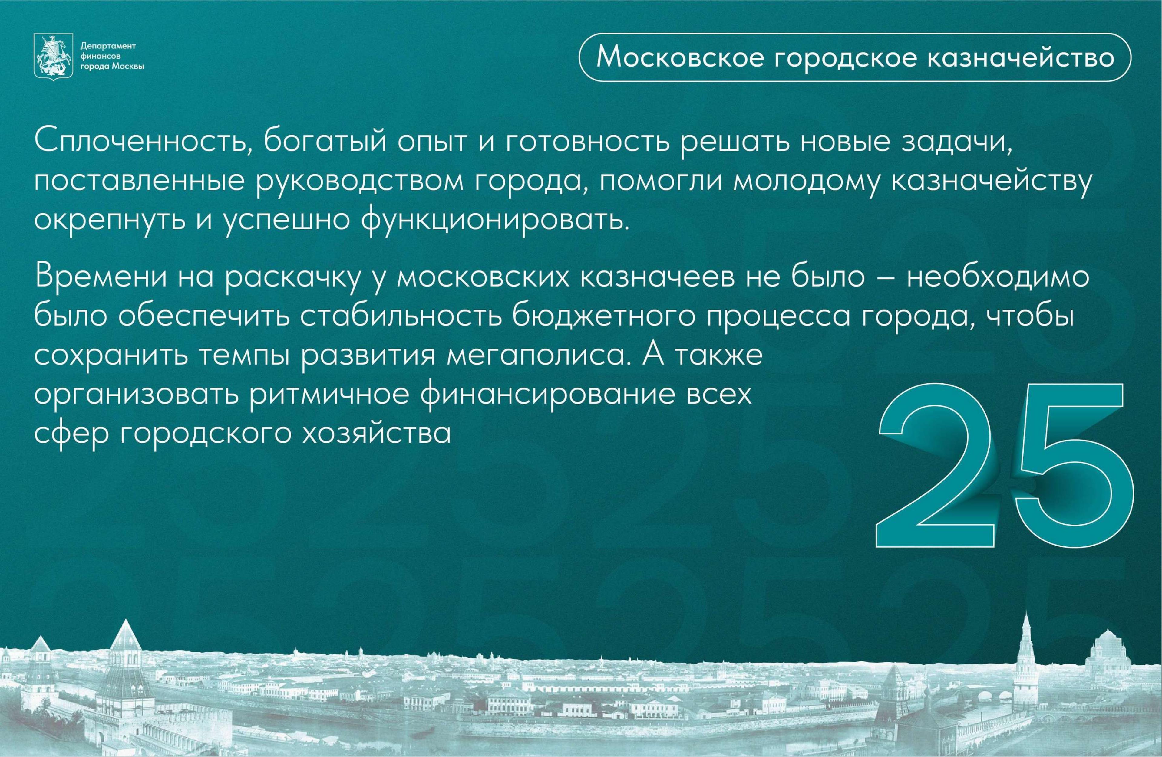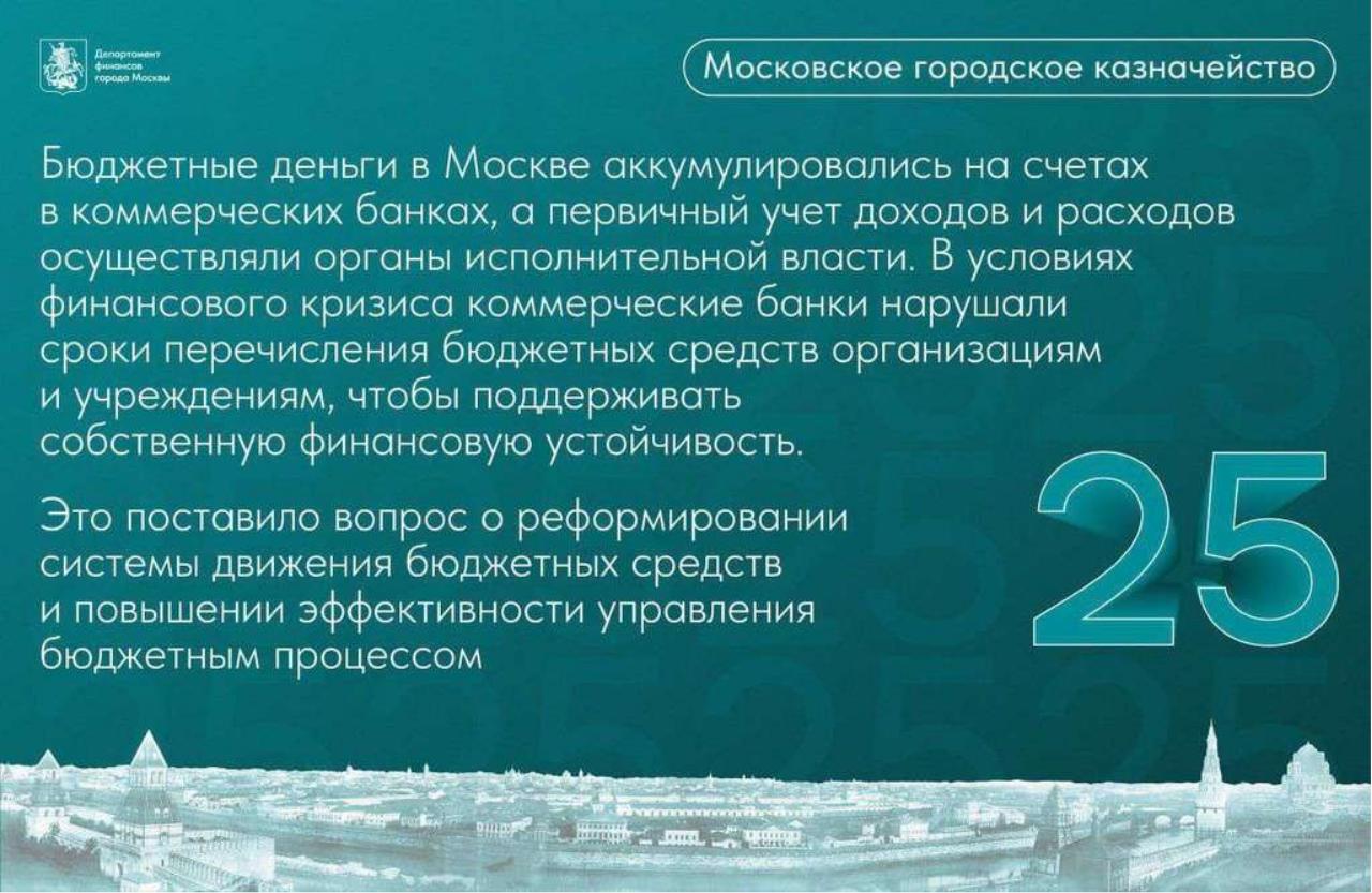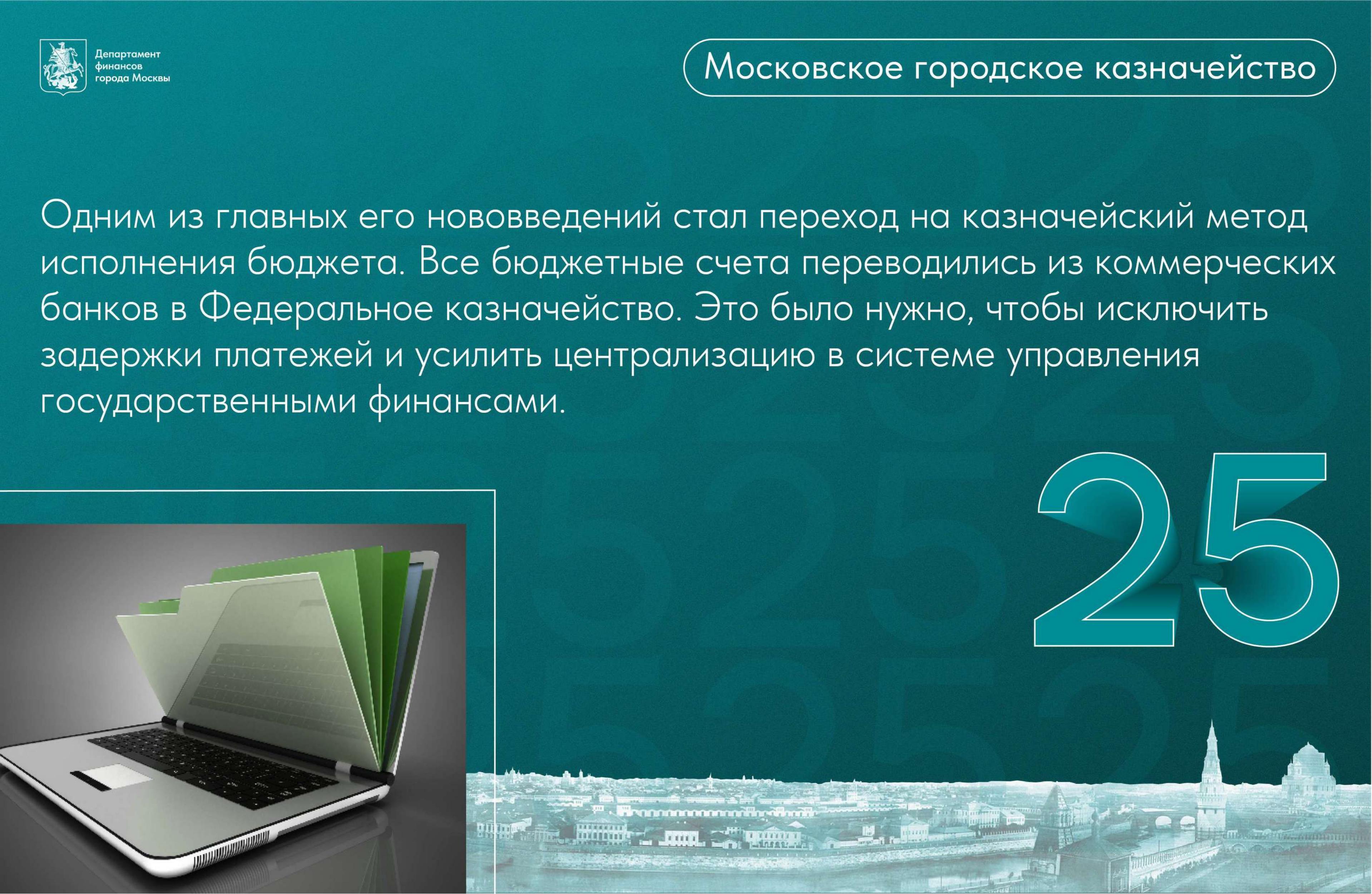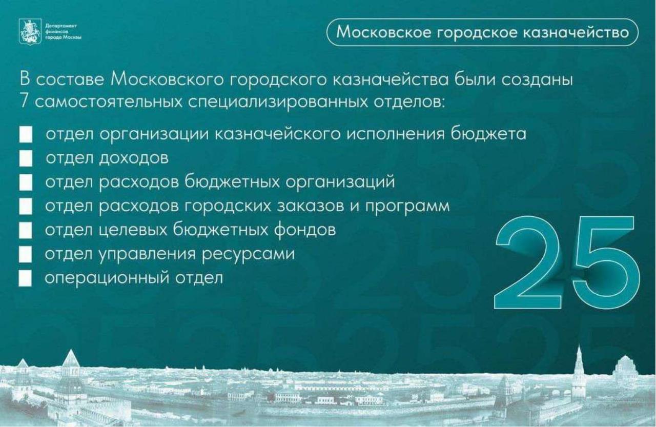 Четверть века столичные казначеи стоят на страже городских финансов Москвы и обеспечивают эффективный контроль за исполнением бюджета столицы.