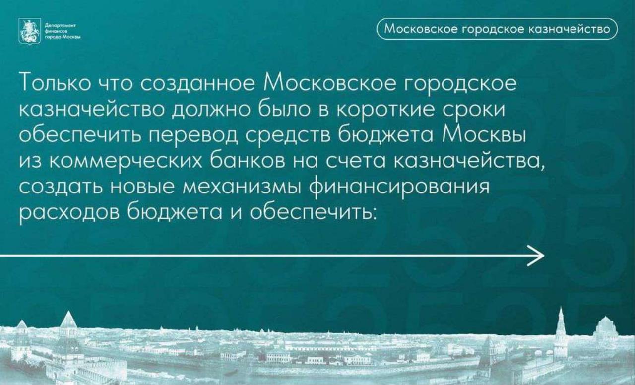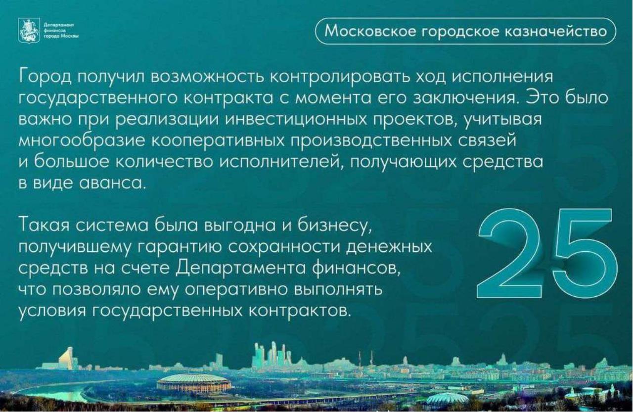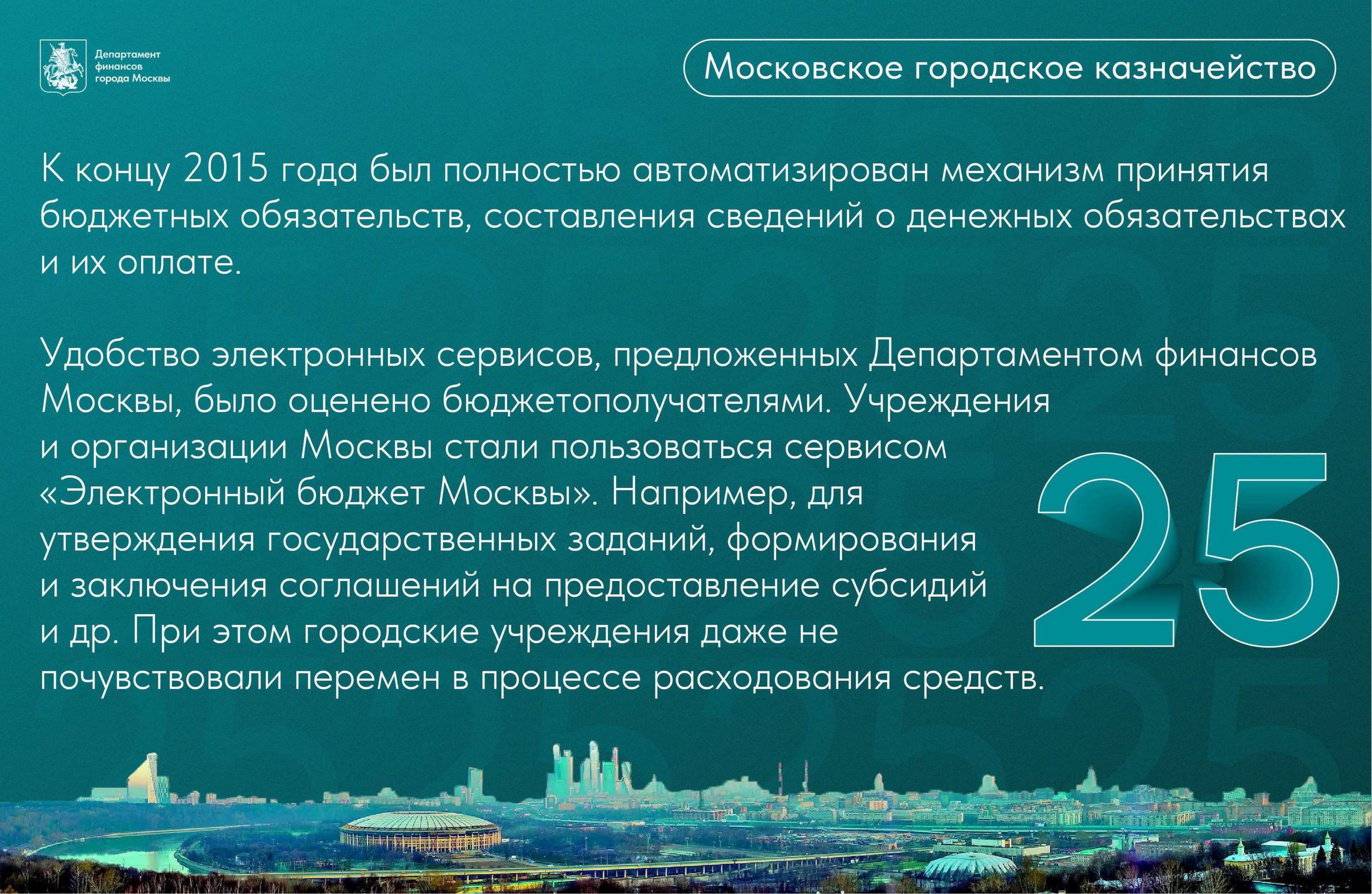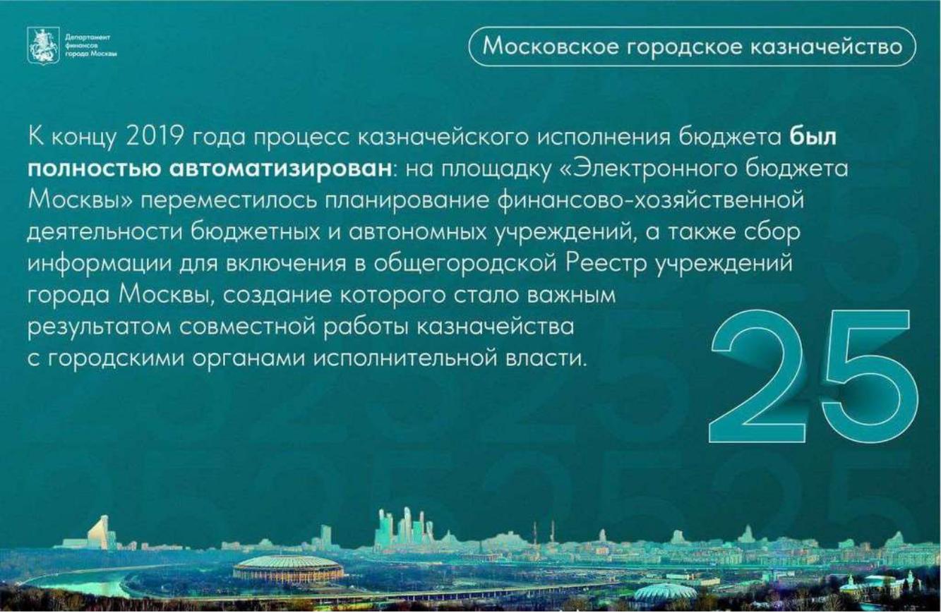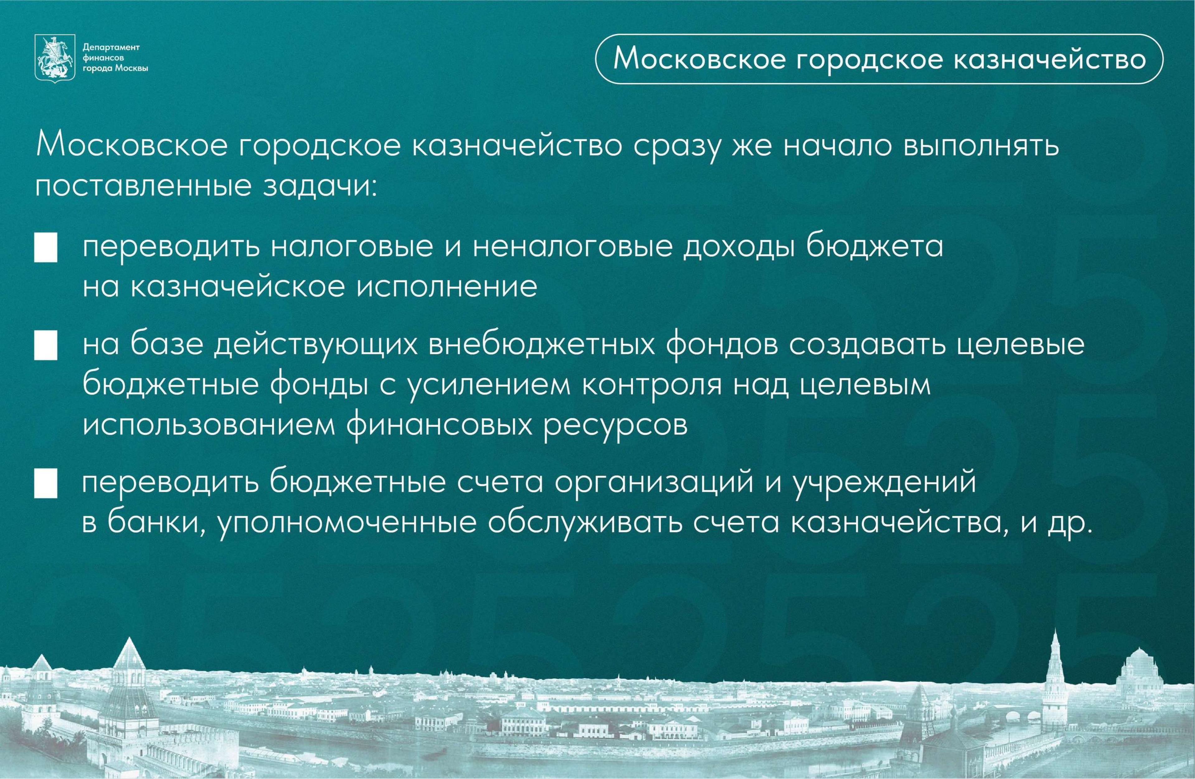 Четверть века столичные казначеи стоят на страже городских финансов Москвы и обеспечивают эффективный контроль за исполнением бюджета столицы.