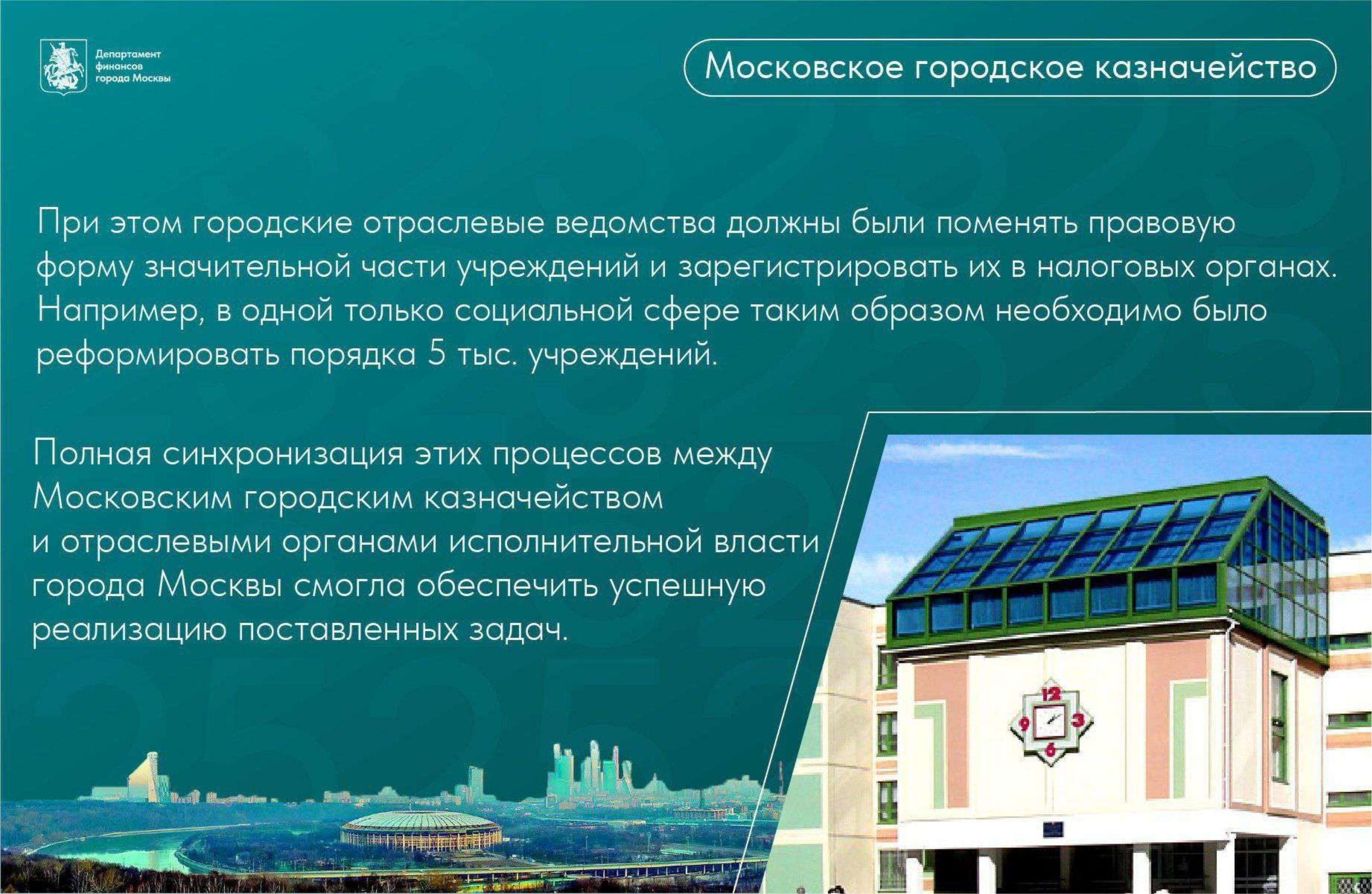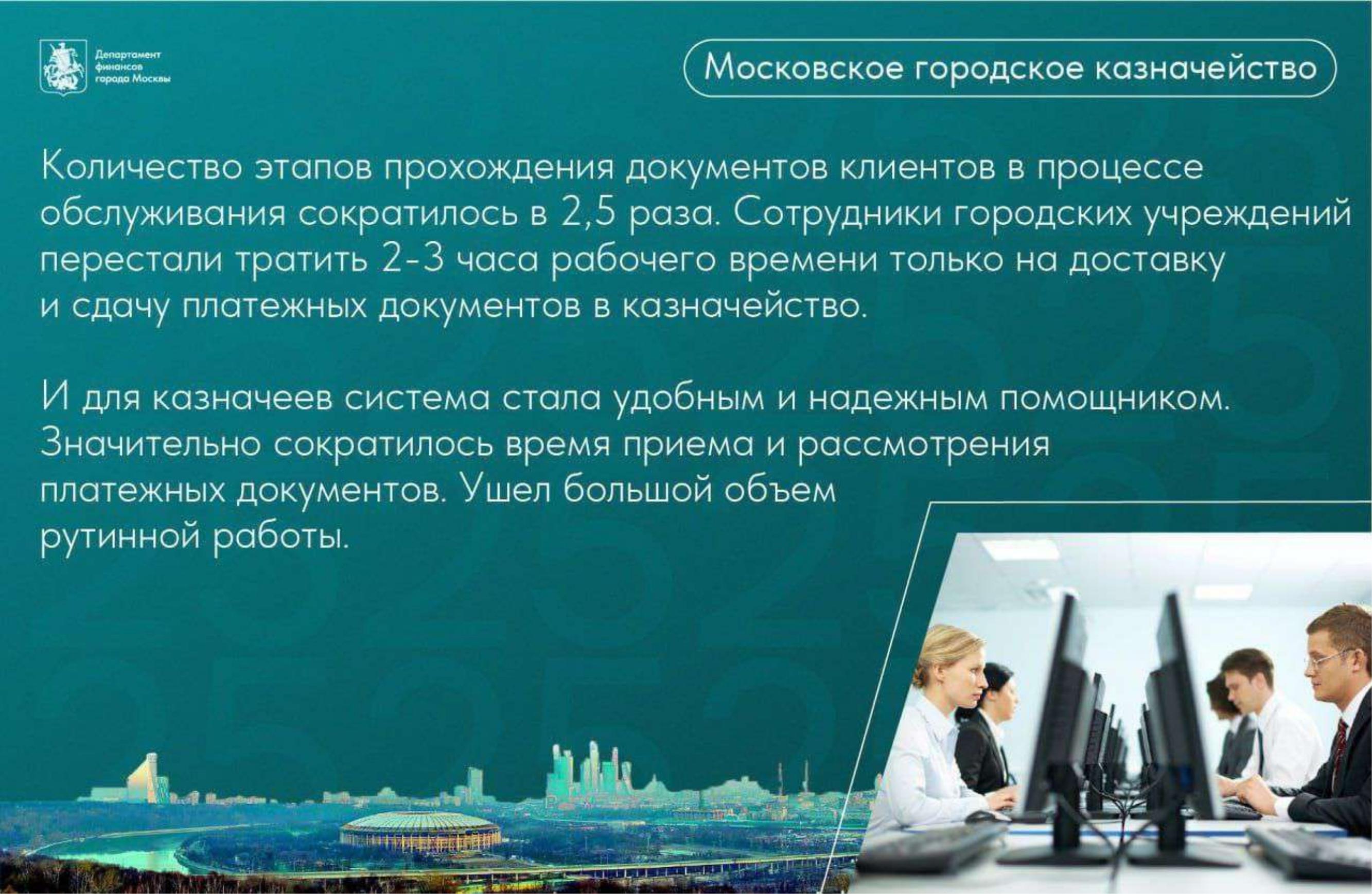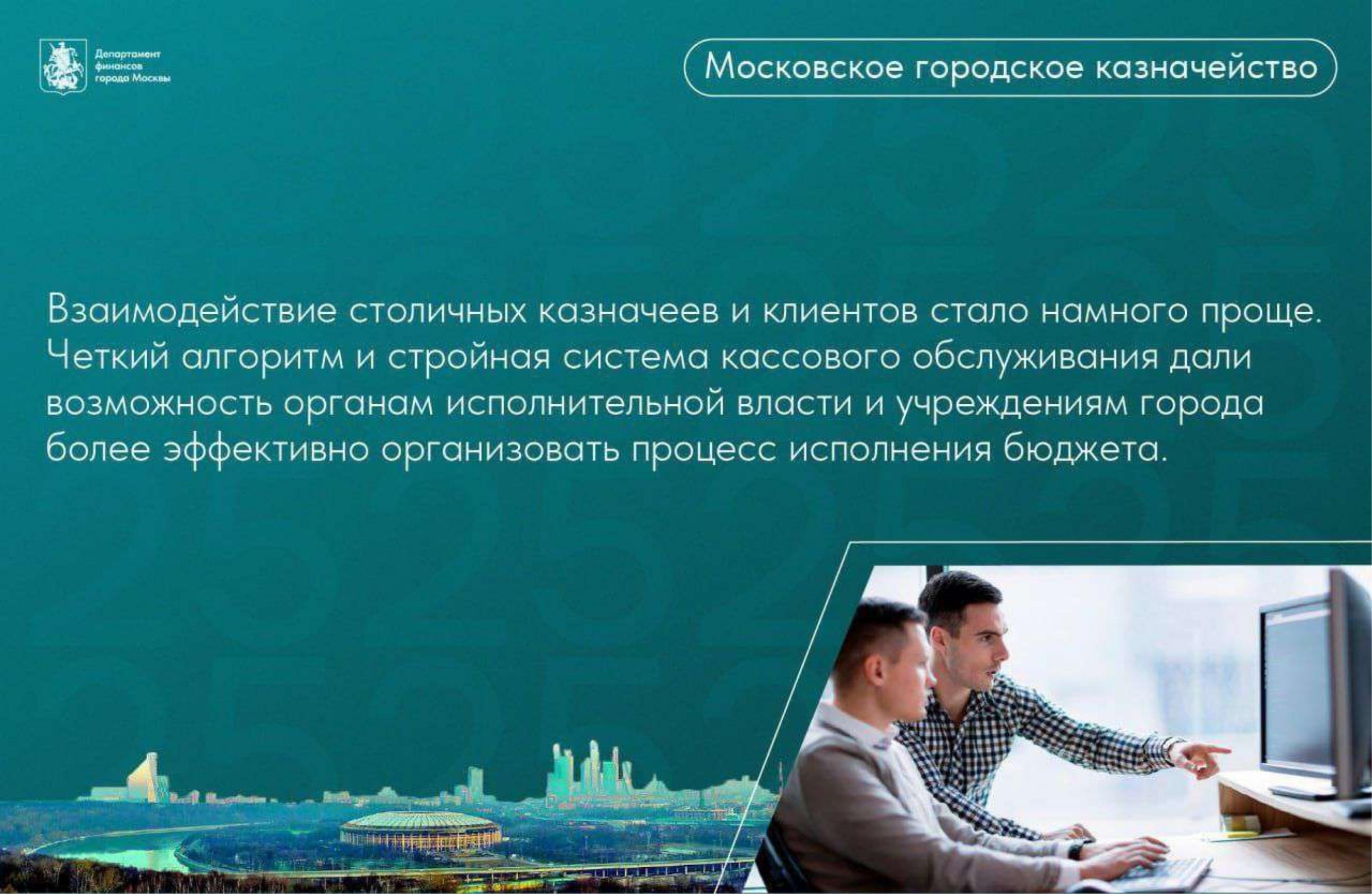 Сегодня Московское городское казначейство обслуживает более 3000 организаций города, использует передовые современные технологии, вносит значительный вклад в развитие финансовой системы города, обеспечивает: